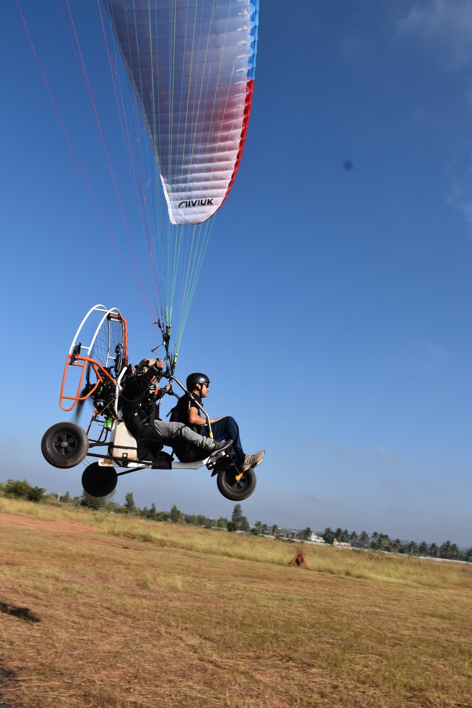 A tandem paramotor flight lets you fly with a certified pilot — no experience needed! You sit back, relax, and enjoy the view while your pilot controls everything.